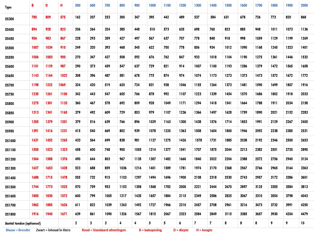 Dieplepel Breedte 800-2000 mm Inhoud 385-4479 liter