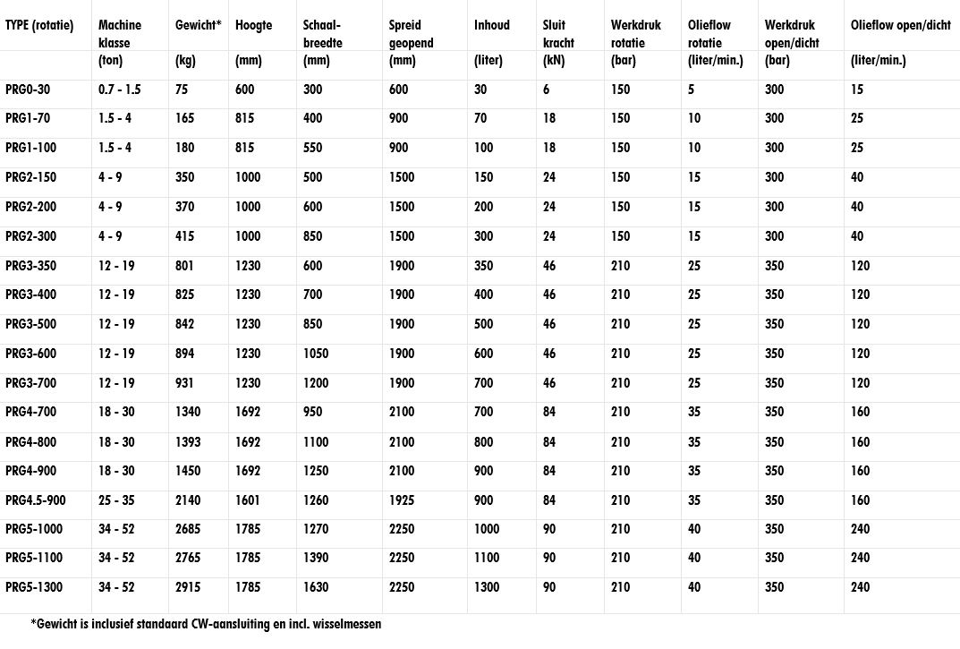 Alle aandrijfmotoren zijn van het A-merk Parker. Vanaf het type PRG3 worden er twee aandrijfmotoren gemonteerd. Dit verdeelt de kracht en zorgt voor een groter draaimoment.