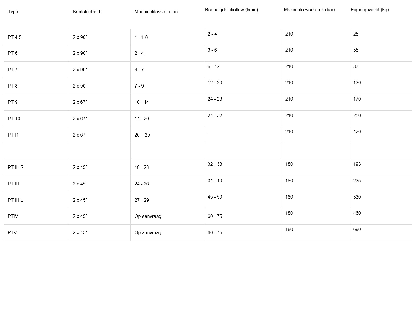 Gewicht 25-250 kg Machineklasse 1-20 ton