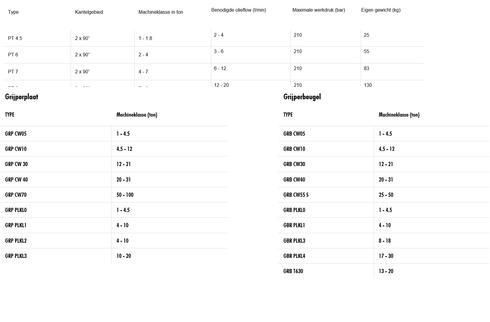GRIJPERPLAAT EN GRIJPERBEUGEL Machineklasse 1-20 ton
