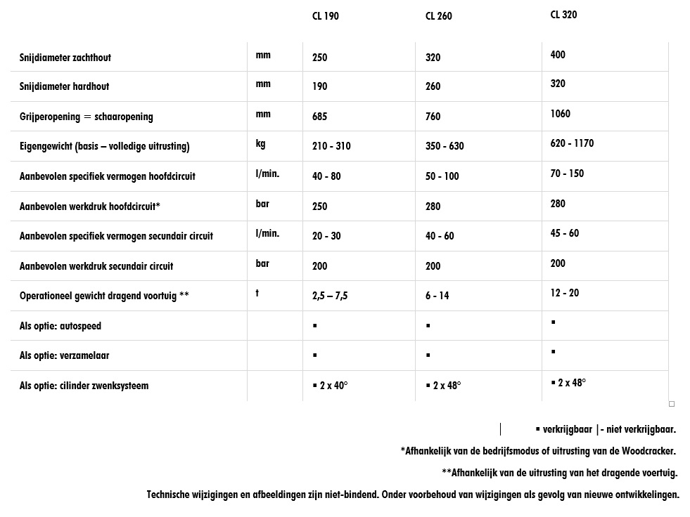 Het voordeel van de WesttecH Woodcracker CL series is de hoge knipkracht met een grote openingswijdte. De grijper heeft een smoorklep, waardoor de snelheid ingesteld kan worden. Verder kunnen afgeknipte bomen en struiken in bundels neergelegd worden en kan de verzamelaar makkelijk worden verwijderd om gewicht te verminderen.